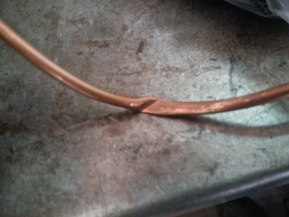 но с этим я уже мы уже сталкиваемся не в первые, как-то на самурая с такой же проблемой сталкивались, решается легко, замятость вырезается и вместо неё ставиться медная трубка большего диаметра и запаивается.
