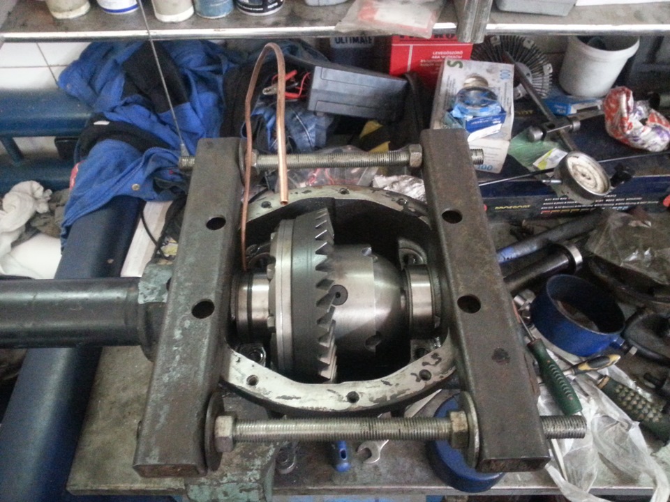 вот с помощью неё можно мост чуть раздвинуть на буквально десятку-две и вставить нужной толщины колечко в нужное место, конечно с соблюдением зазора прописанного в книжке по ремонту.