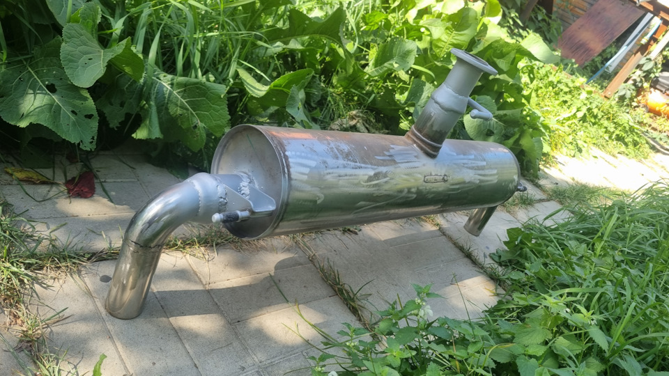 Поставил прямоточный трёхкамерный резонатор с поджатием и набивкой. На конец повесил поперечную банку с 2-мя выходами.