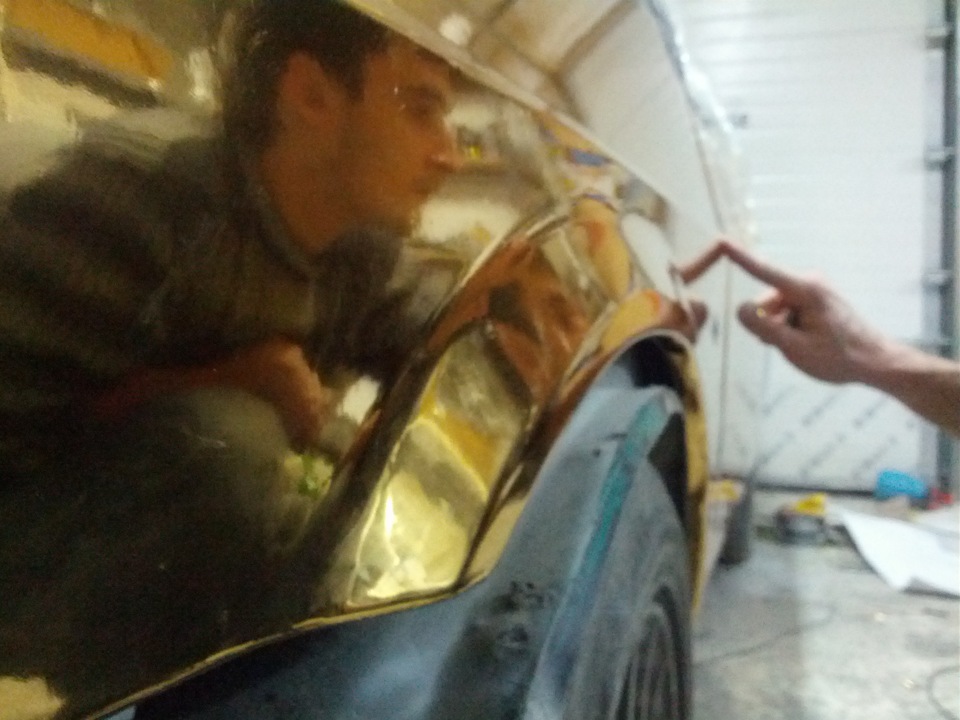 машина почти вся шпаклевалась и выравнивалась, ибо новые детали были неровные и при первой оклейки хром выглядил криво.,