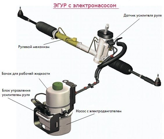 На помощь механике и гидравлике, как всегда, пришла электроника. В результате такого симбиоза появился электрогидравлический усилитель. Впервые его применили на автомобилях "Аudi" под названием "Servotronic". Существует два типа ЭГУРа: с электромагнитным клапаном и с электронасосом. Управляет работой усилителя электронный блок на основании показаний датчиков скорости, поворота руля, оборотов коленвала. Набор датчиков может меняться в зависимости от модели автомобиля.
