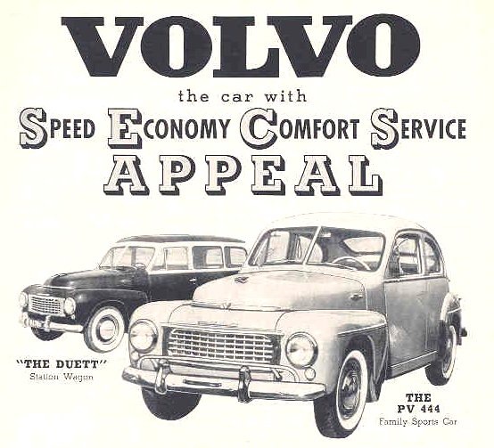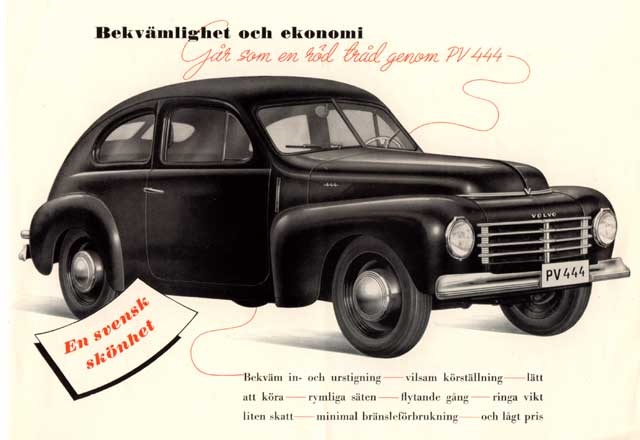 В начале 40-х годов компания разработала сравнительно недорогие модели Volvo PV36 и Volvo PV51, в Швеции ставшие «народными». Война помешала продаже этих моделей в Европе, но первые послевоенные годы мощные рекламные компании принесли фирме известность в Европе и Америке. Послевоенная модель Volvo PV44 лидировала в Швеции по числу продаж до 1953 и стала основой последующих «хитов» — PV 444 и PV 544. Презентация первого массового автомобиля Volvo — PV 444 — состоялась в 1944 на знаменитой выставке Volvo в Королевском теннисном зале в Стокгольме.