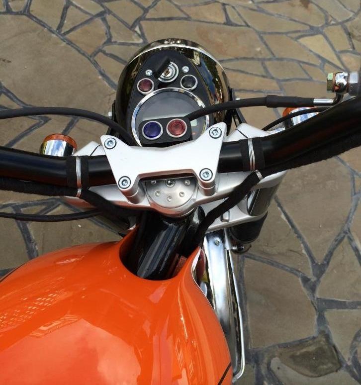 Даже фирменный бак специфической формы здесь уже не родной, а созданный заново хотя и очень похожий на оригинал. Это же касается и головной оптики с интегрированным цифровым щитком приборов.