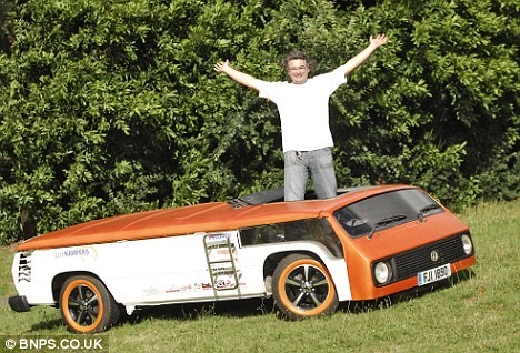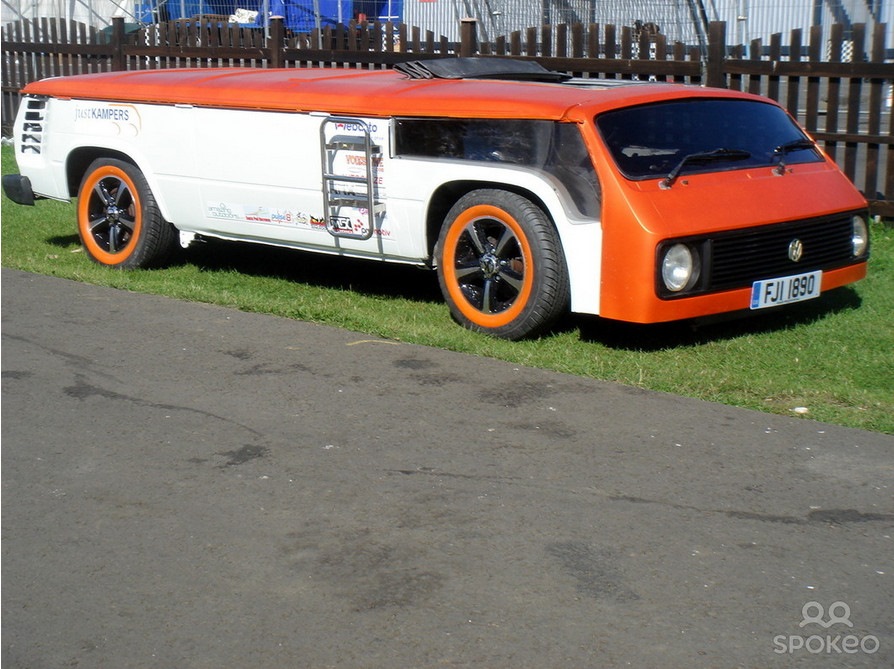 Энди Сондерс попросил компанию Webasto (не реклама, мне за это не доплачивают, к сожалению =)) ) помочь ему создать самый низкий в мире VW Camper на большом ежегодном фестивале владельцев VW "Bug Jam 22", проходившем на гоночной трассе в Santa Pod 18-20 июля 2008 года.