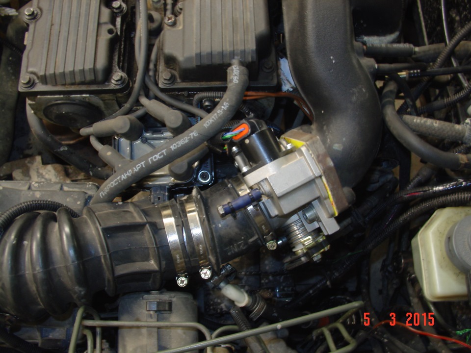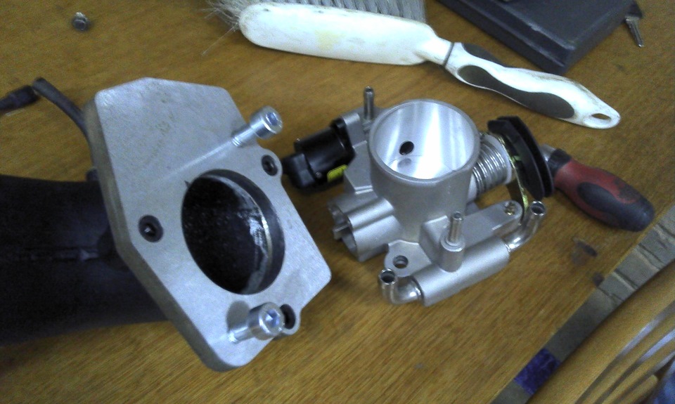 Для установки ДЗ ВАЗ-2112 на впускной рессивер двигателя 20Т4 изготовили переходную пластину: