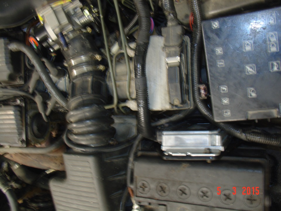 Блок ЭБУ закрепили на штатное место (немного измененное) крепление родного ЭБУ возле аккумулятора, всю проводку одели в пластиковую гофру.