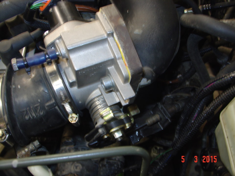 Подводящий патрубок от коробки фильтра к ДЗ изготовлен из стандартного патрубка подачи воздуха ВАЗ-2112