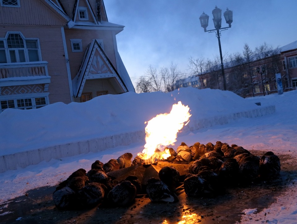 Фотоаппарат буквально через несколько минут съемки стал моргать индикатором разрядки… значит мороз за -40С, а холодно страсть как из-за очень высокой влажности
