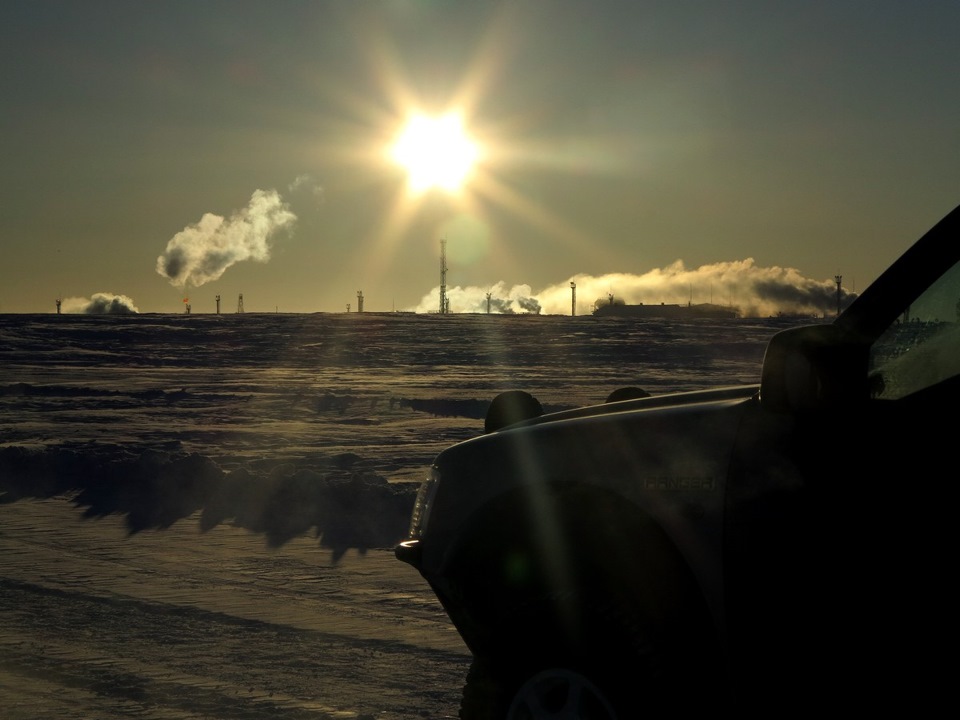 Рассвет открасил тундру жизнерадостными красками, трафик же по "дороге жизни" не затихал ночью ни на минуту. Легковых машин по тундре ходит мало, чаще тебя окружают грузовики с колесной формулой 6х6.