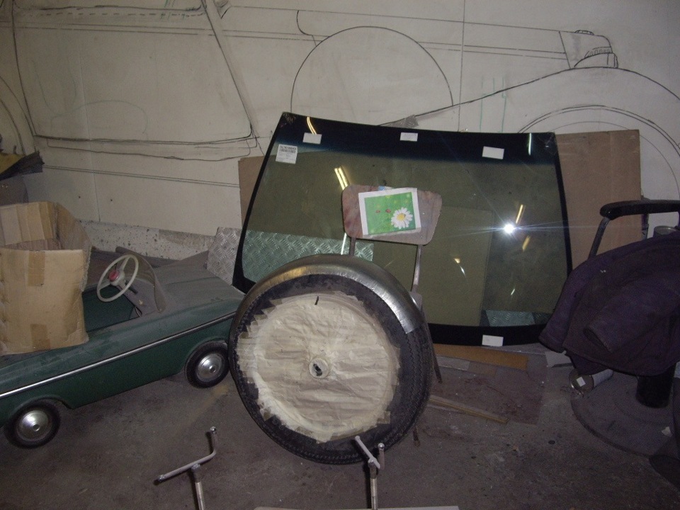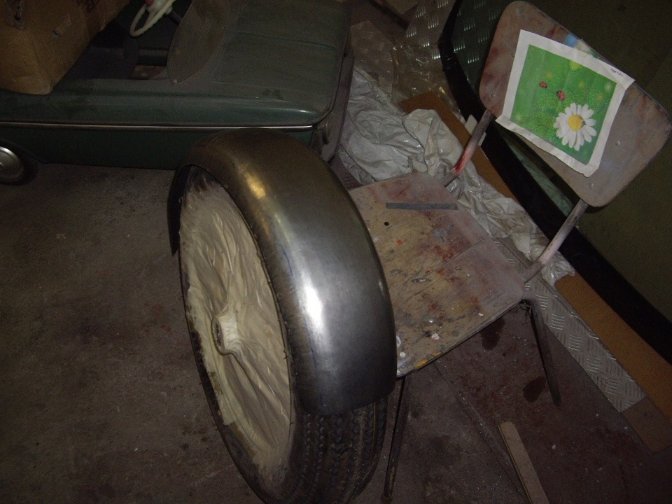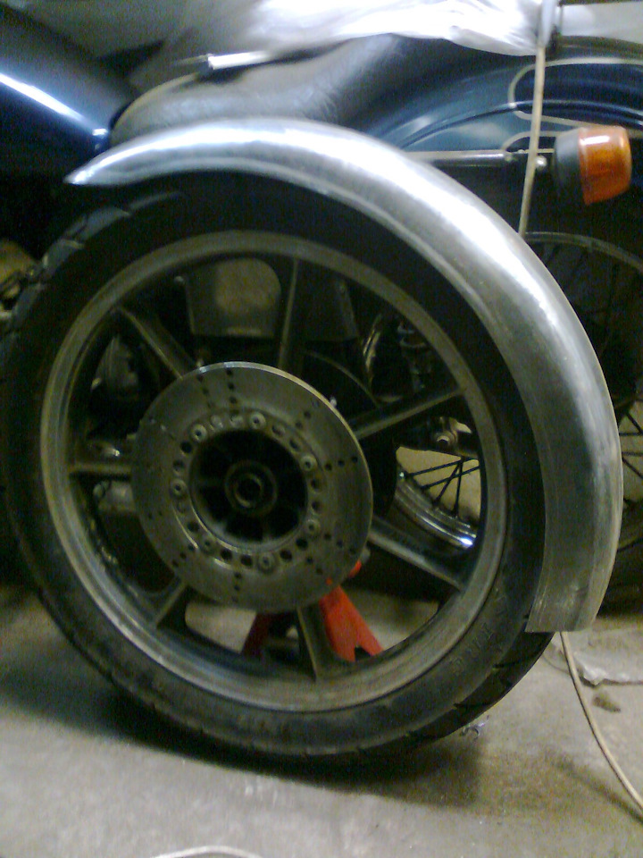 Выкатывание крыла на английском колесе я, к сожалению, пропустил, так как был послан в магазин за колбасой. Когда я вернулся, то крылышко уже лежало на мотоциклетном колесе.
