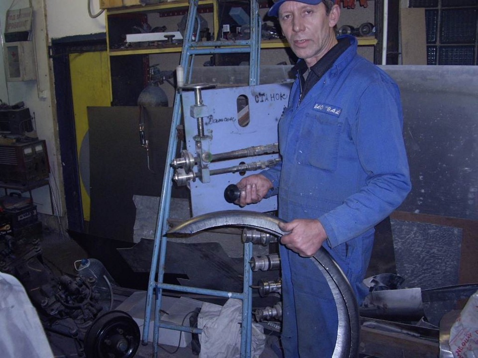 Главное — он не должен разгибаться при прокатывании листа. Наш станочек изготовлен из сантиметровой плиты 40Х, усилен дополнительно, и то гнется.