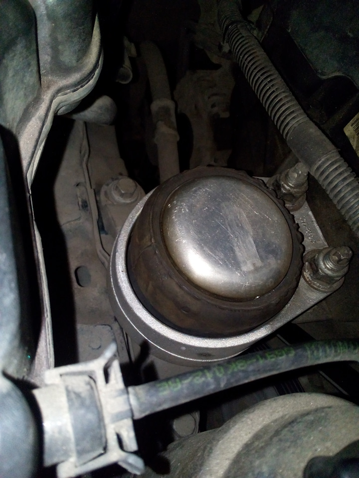 К 70тк. стал замечать излишнюю вибрацию от двигателя. В положении Р только с увеличением оборотов, а в положении D и R даже на холостом ходу. При этом двигатель работает ровно, не шелохнется. Под подозрение попала правая опора ДВС. Зазор между чашей опоры и кронштейном был около 4мм.
