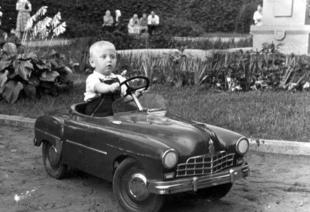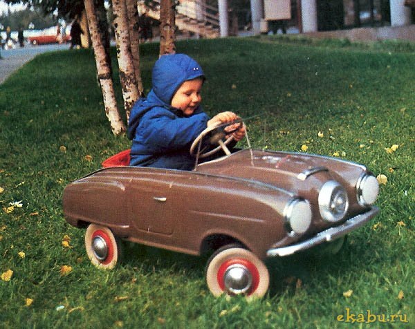А что за тёмный педальный автомобиль (на фоне комода)? Он советский? Известно, кто производитель? И каких он годов выпуска?