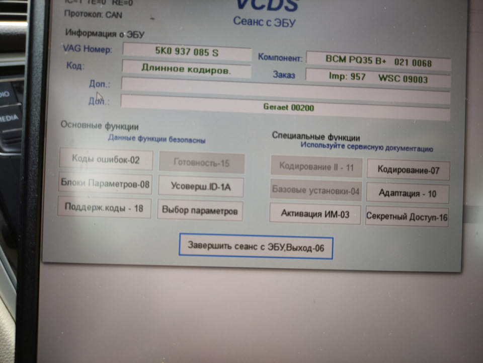 У меня шнур ВАСЯ-ДИАГНОСТ версии 14.8.9R, сегодня пытался заменить свой старый блок 1К0 907 530F на новый 7N0 907 530AM. Что-то не могу разобраться как его правильно закодировать. Вы бы не могли рассказать как это правильно сделать?