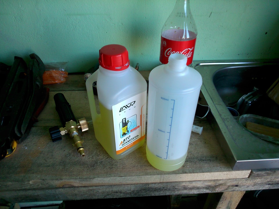 Бесконтактную пену мешал 1 к 5. И приступаем к мытью)