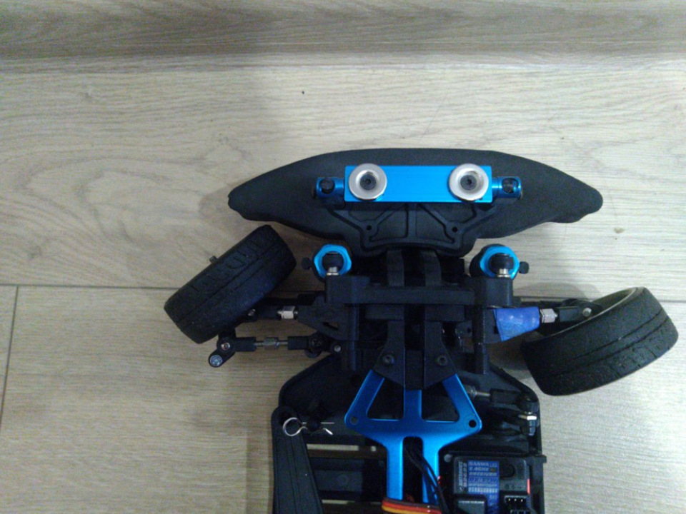 Под корпусом – приводной мотор, батарейный блок, модуль радиопередачи, серво-машинка для управления передними колёсами. Всё это крепится на удачно скопированную раму модельки HSP Flying Fish, которая считается просто минимумом у RC-дрифтеров.