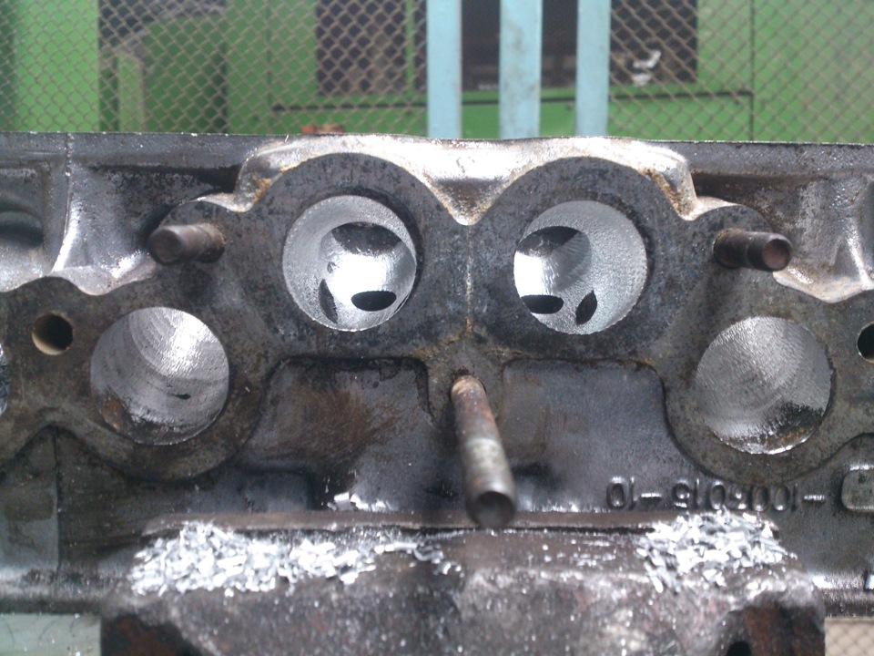Недавно в руки попадала ГБЦ от 2101. Решил ее привезти в порядок и распилить) Ну а что? тема конечно не нова, но когда нечем заняться можно и побаловаться))) Вообщем что получилось, каналы: впуск 34мм, выпуск 31, седла: впуск 34мм, выпуск решил не трогать, ибо точу седла шаровоми фрезами и самый маленький шарик у меня 29)) не стал рисковать…не хочется портить бошку, оставил для надежности как есть)