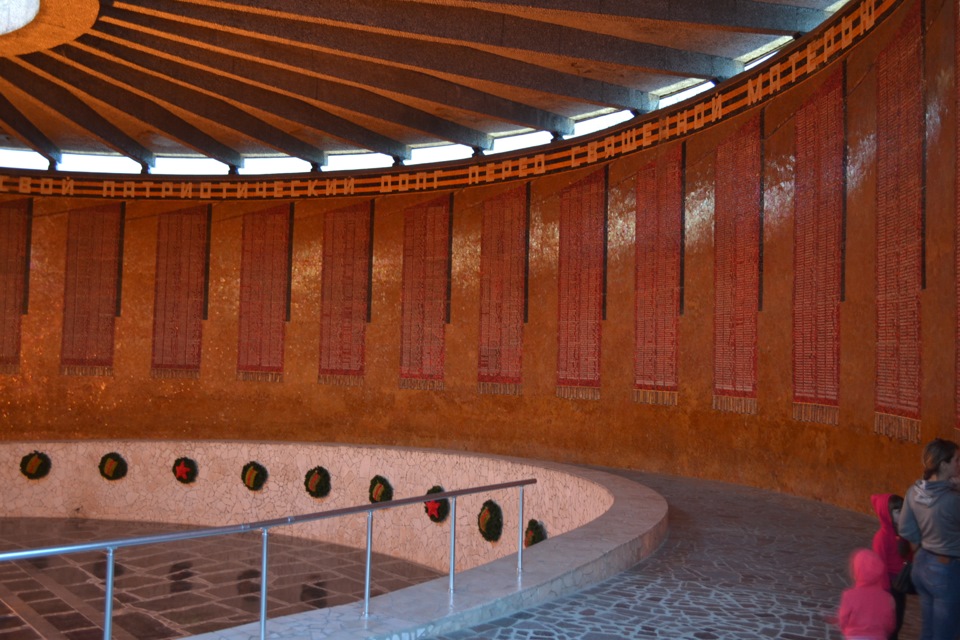 Вдоль серпантина, в холме, перезахоронены останки 34 505 воинов — защитников Сталинграда, а также 37 гранитных надгробий Героев Советского Союза, участников Сталинградской битвы.
