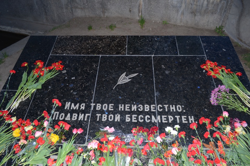 Завершает площадь Подпорная стена с текстами-выписками из Приказов Верховного Главнокомандующего И.В. Сталина и замурованной капсулой с обращением к потомкам.