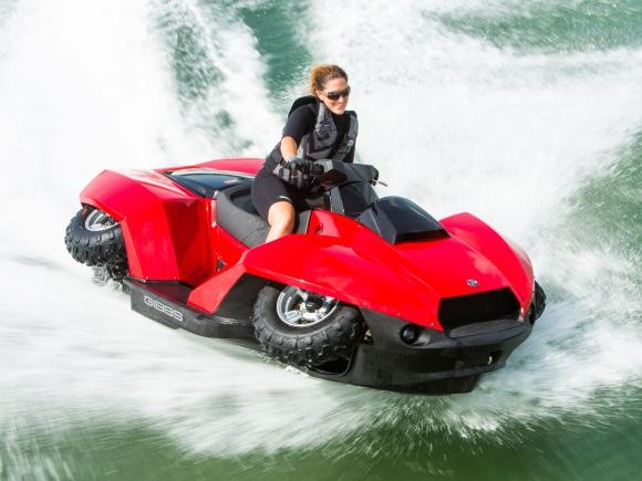 Максимальная скорость достигает 70+ км/ч (и на воде, и на дороге). Квадроцикл Quadski XL весит 652 кг, комплектуется 12-дюймовыми колесами. Цена производителя — 40 000 долларов.