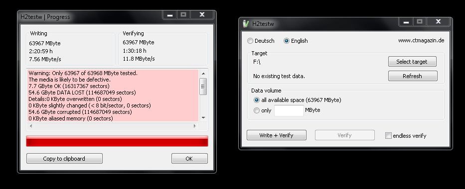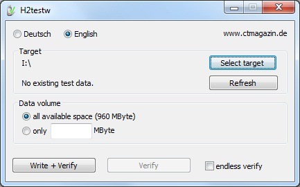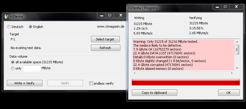 Скачиваем программу h2testw (213 КБ), и с помощью нее проверяем обе карточки.