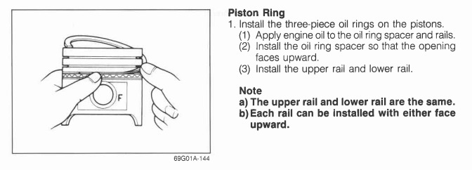 Вот кстати на счет маслосъемных, оригинальный мануал гласит любой стороной и кольца выворачиваются в любую сторону смотря как гнуть