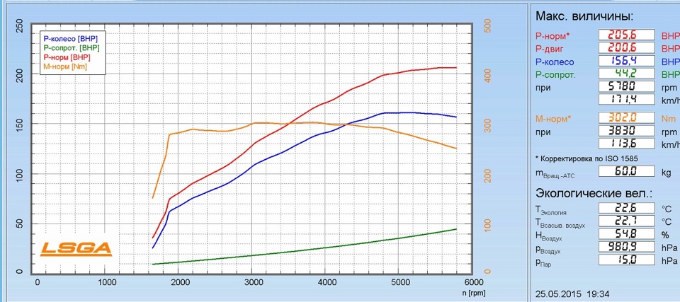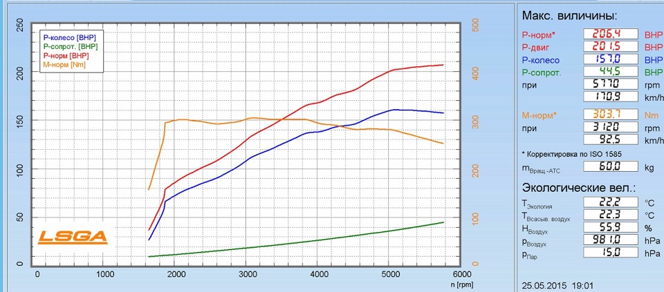 Мощность 206 л/с, момент 303.7 Нм – да немного не дотягивает до обещанного результата, но если сравнивать с графиком от первой фирмы, то в принципе сойдет.