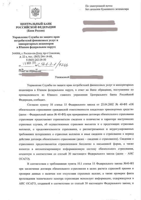 Что касается ответа из ЦБ РФ, он тоже был, был немного раньше ответа РСА, но там смазано ответил что мол разберутся и будет произведен перерасчет КБМ.