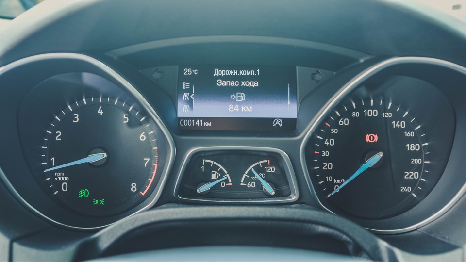 В ходу фокус меня приятно удивил. Начнем с двигателя. Если не знать какой у него объем — то можно подумать что это 1.4-1.6 турбо или 1.8 атмо. Поверить что объем у него всего 1.0 литра очень тяжело. Разгоняет автомобиль этот агрегат довольно резво и с довольно приятным звуком. Конечно, назвать эту машину быстрой тяжело, но благодаря четкой коробке, понятному приводу сцепления управлять ей приятно. Особого упоминания заслуживает подвеска и управляемость машины. Настройки тут довольно комфортные, но не излишне мягкие. Машина достойно борется с нашими, порой очень неровными, дорогами и не делает больших кренов в поворотах. В совокупности машина обладает довольно азартным поведением и способна доставить водителю удовольствие от управления. Единственное, чего, на мой взгляд, ей не хватает — так это чуть более мощного мотора. Все-таки тяги, особенно при обгонах на трассе, ей немного не хватает. Понравилась и шумоизоляция машины. Её трудно назвать идеальной, но оценку "хорошо" она заслуживает. Скорости, особенно в городе практически не чувствуется. Тормоза здесь тоже очень хорошие, ими, как и самим автомобилем, удобно и самое главное приятно управлять.
