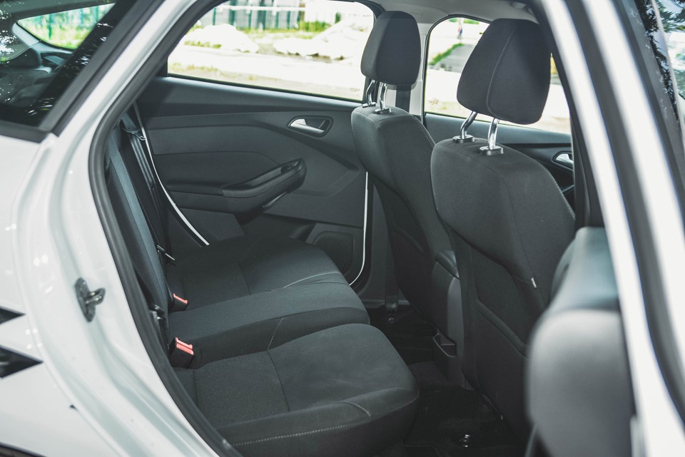 Задним пассажирам в новом Фокус вполне удобно, даже несмотря на отсутствие подлокотника. Места по длине и высоте достаточно.