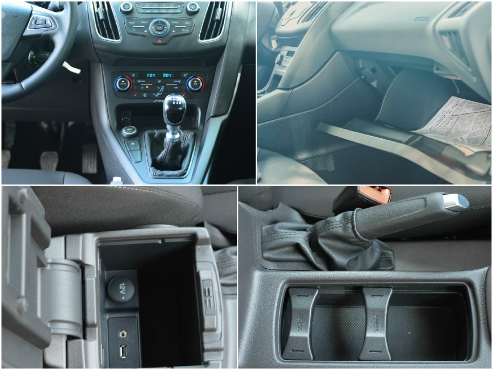 Внутри новый фокус тоже похож на предыдущий. Я, как человек не знакомый с предыдущим Фокусом, изменений сначала не заметил. Позже, конечно, выяснилось, что теперь панель приборов внизу имеет нишу для мелочей и еще один разъем USB, так же слева от рычага КПП появились кнопки.