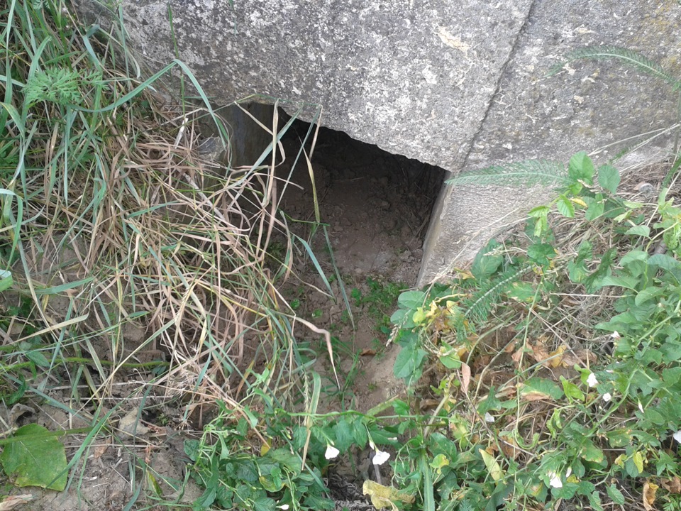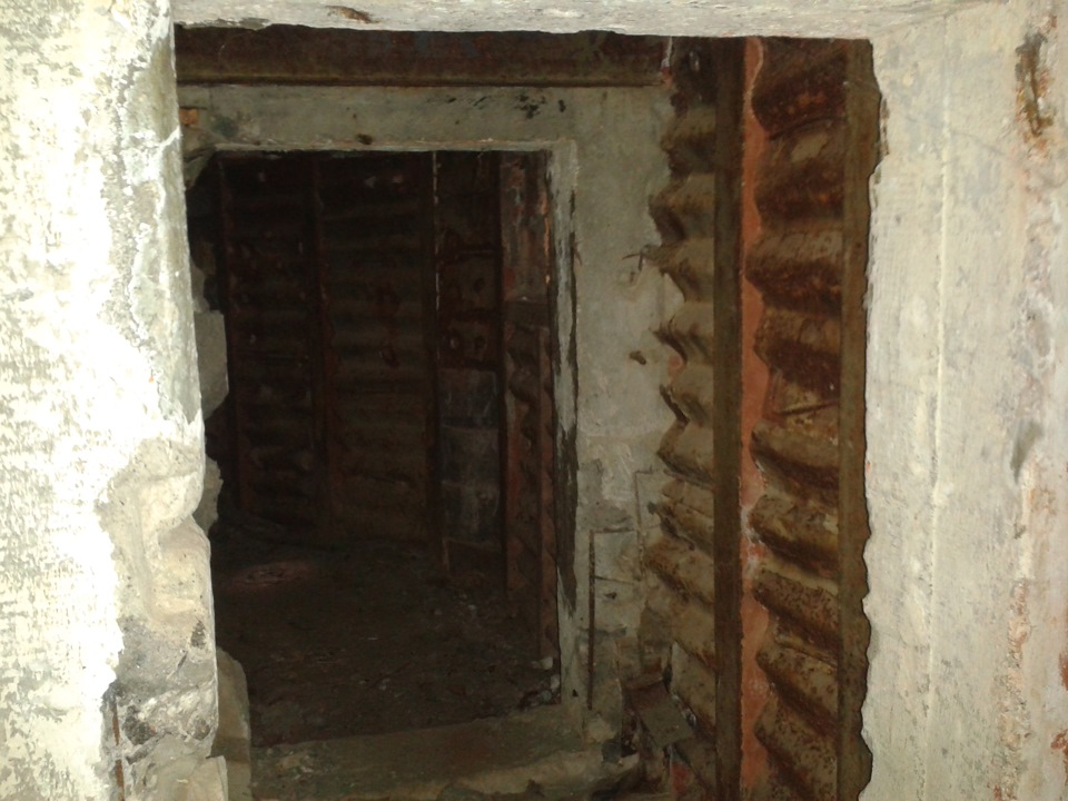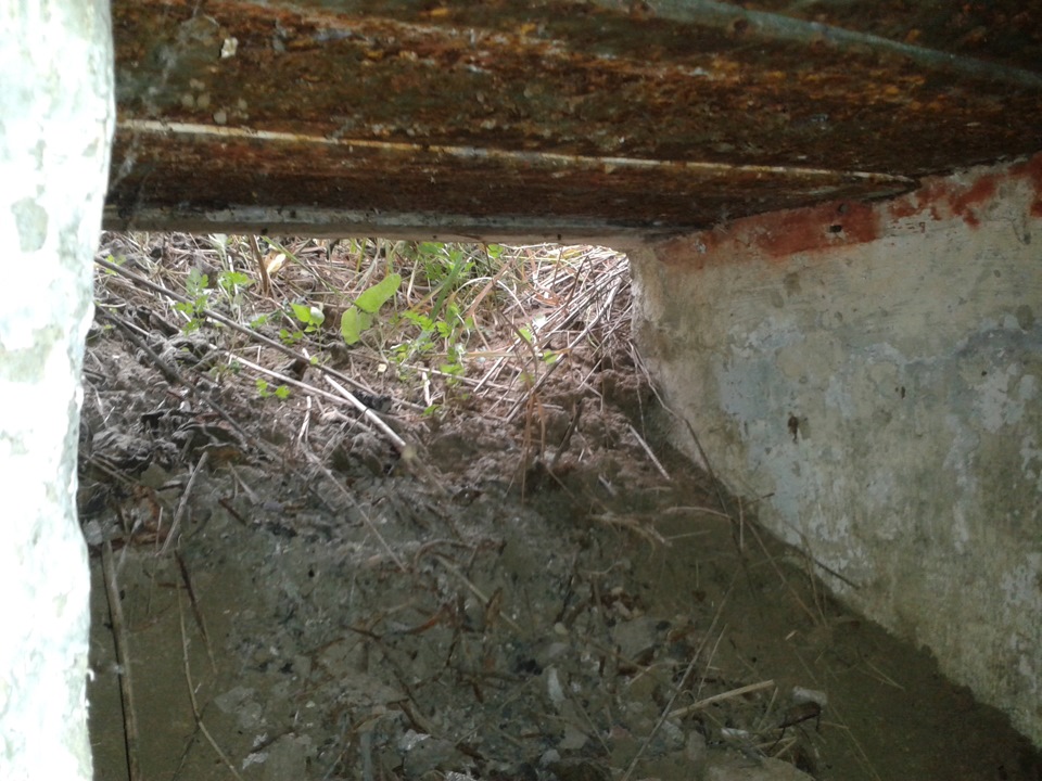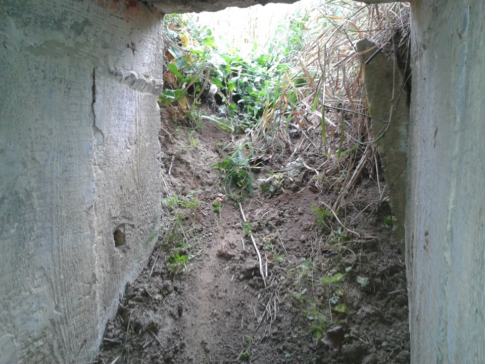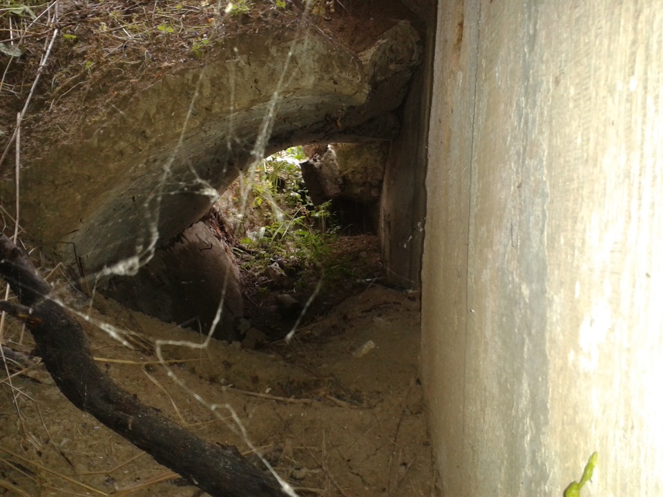 Все осмотрев, принял еще одну попытку найти 309, пройдясь понизу Ж/Д насыпи. Опять неудача, зато нашел еще один ДОТ который стоит прямо под Ж/Д рельсами. Там где должен быть вход, лежат сами рельсы, забираться пришлось через амбразуру.