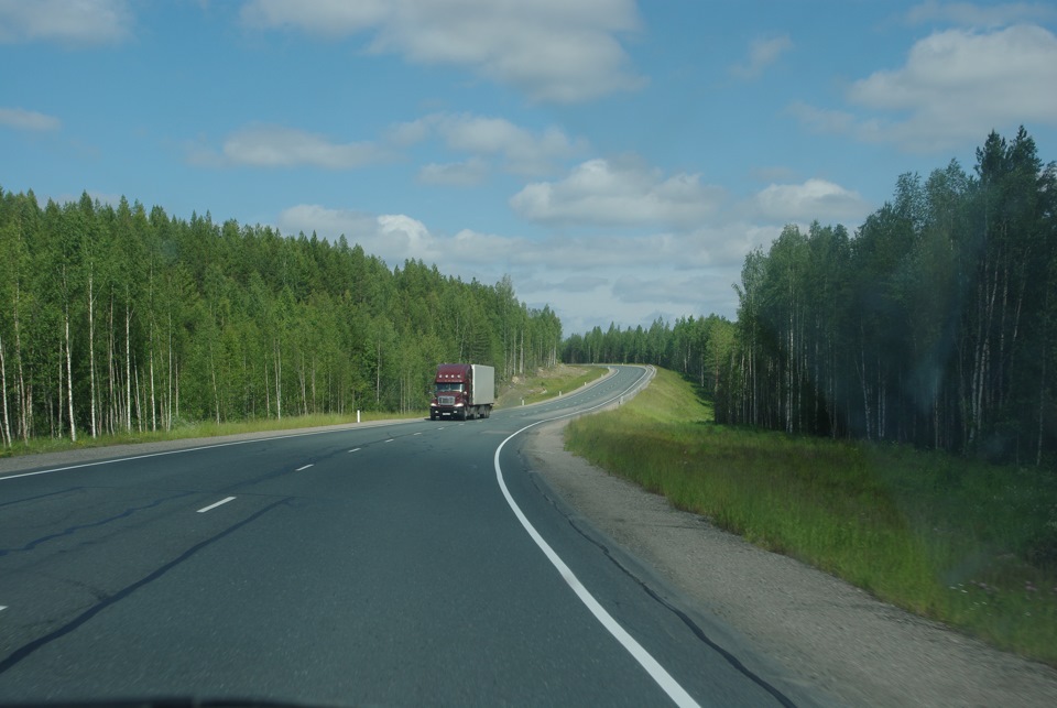 Заканчивался второй день путешествия. Окончательно и бесповоротно решив, что дальше от точки к точке будем двигаться по «Коле», чтоб наверстать немерянную потерю времени на коротком участке до Петрозаводска, мы перед выездом из города залили полный бак, вышли на Мурманку и втопили со всей своей богатырской скоростью. Чуть больше сотни кило в час.