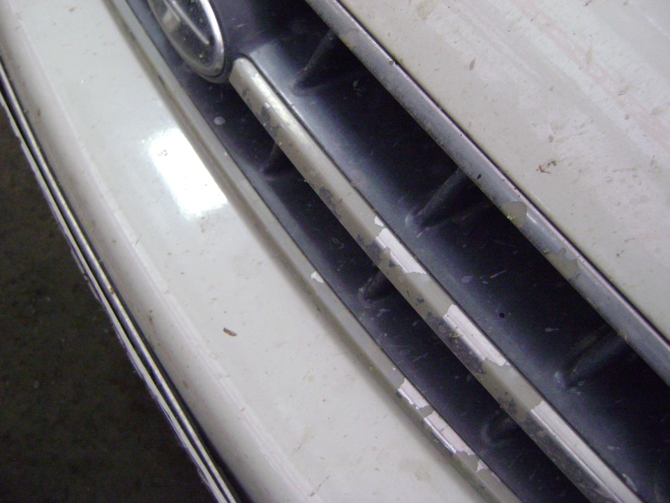 Решетка облазиет. Вроде мелочь, но я обращаю на это внимание почему? Потому что внешний эстетический вид, портит каждая мелочь, и именно из мелочей складывается мнение о машине. А теперь прибавьте решетке, 2 бампера в не лучшем состоянии + трещина на лобовухе, и уже как-то не очень нравится машина, ведь это все вложения.