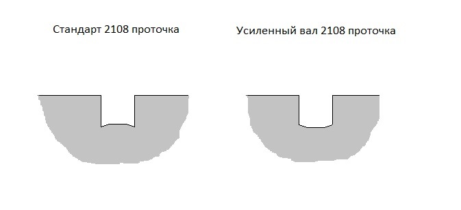 Стандартный вал имеет более глубокую нарезку и полукольца встают с острыми гранями.