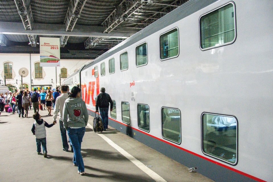 Путешествовали мы на новом двухэтажном поезде. Как человек, страдающий в поездах от высокого роста могу сказать — жить в таком вагоне можно, полки по ощущениям длиннее, чем в обычном купе, но самое печальное место — верхняя полка второго уровня. Там сильно скошенные потолки мешают комфортно расположиться человеку с высоким ростом.