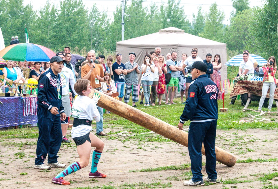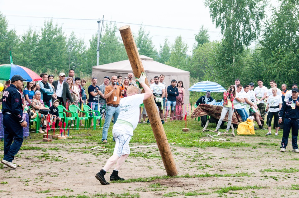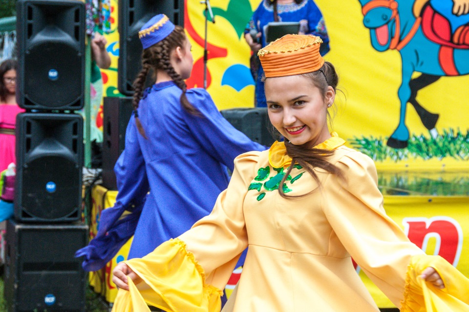 На Сабантуй автобусы везут народ из нескольких точек города. Внутри все жутко неорганизованно, мало праздника, неимоверно много торгашей, и в тот день это все еще было богато сдобрено дождем. В результате мы увидели мало. посмотрели на танцы и соревнования силачей. До борьбы и конных состязаний мы не добрались, да и не поняли как — затерялись в толпах торгашей.