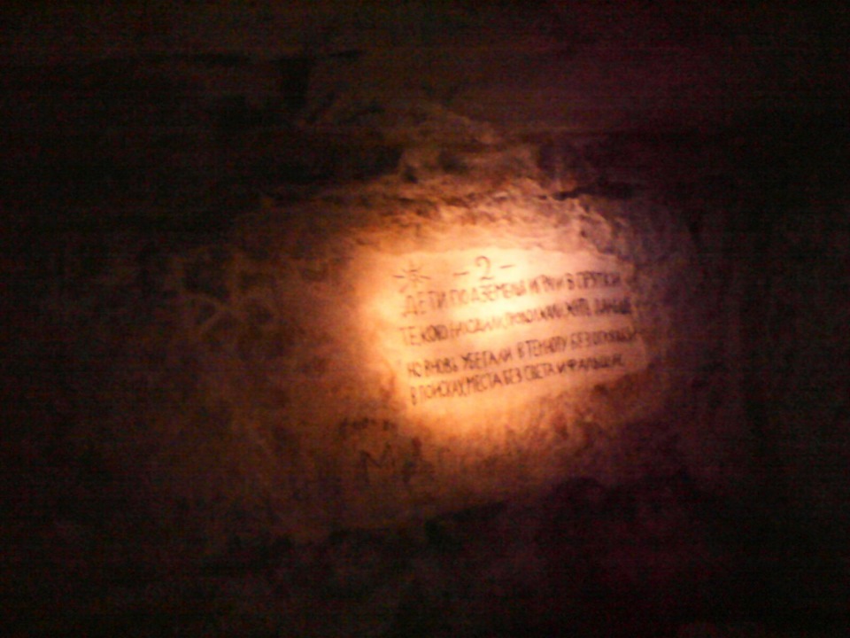 Когда приехали и народ увидел спуск из которого шёл холод, некоторые начали пятится от него назад. Но в итоге все погрузились во мрак пещеры.