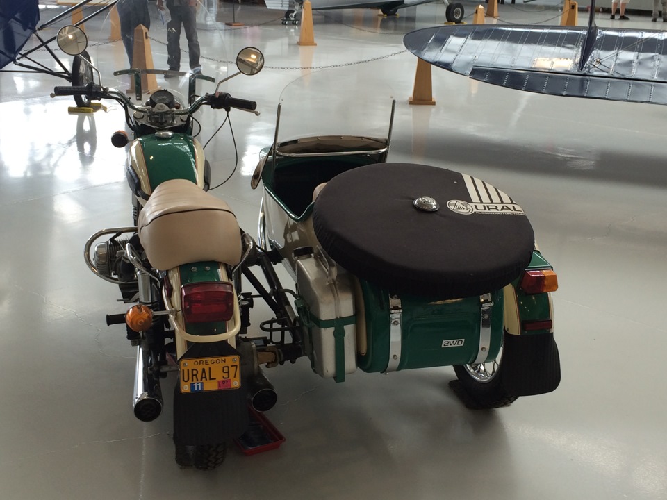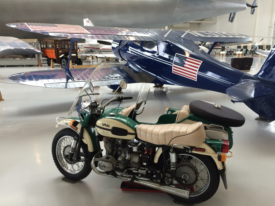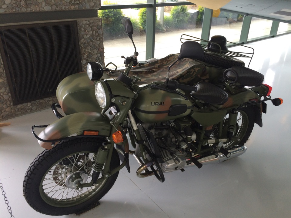 И устанавливать в экспозиции верхнеклапанный 750cc мотоцикл с рычажной вилкой, маятниковой задней подвеской, приводом на коляску, дисковым тормозом, обилием пластмассы и крупной надписью URAL (которая появилась только на баке М-62) — моветон даже для американцев.