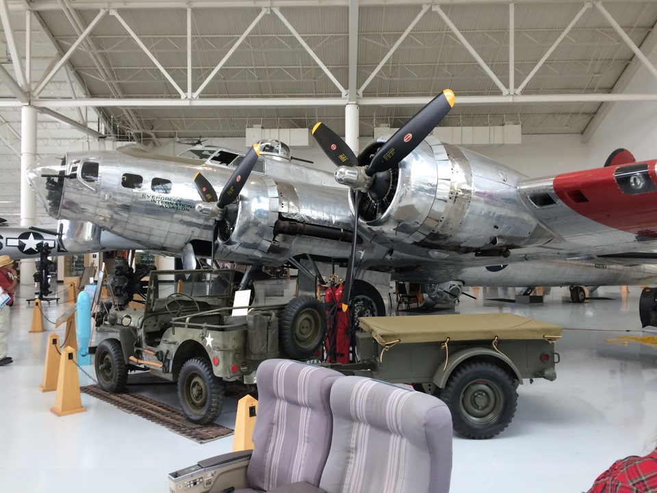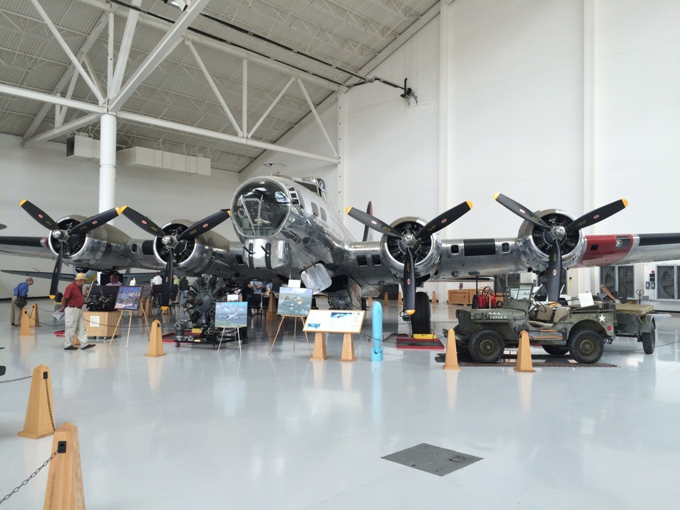 Его величество Boeing B-17 Flying Fortress (Летающая Крепость). Настоящая легенда. Много книг написано, песен спето и фильмов снято про этот самолет. Конкретно этот экземпляр успел повоевать с япами на просторах Тихого океана. Потом машину купили гражданские и перестроили в "пожарку". Позже сузейщики вернули ему оригинальный вид.