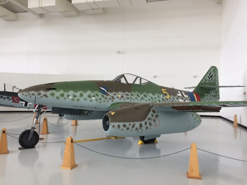 Поворачиваем голову на 180 градусов и видим Ме-262А-1. Я сперва засомневался в подлинности данного экземпляра, но уже после прочтения описания самолета полностью убедился в своей теории. Это попросту не летающая копия самолета. Хотя построен он из тех же самых материалов и по тем же самым технологиям, что и оригинал.
