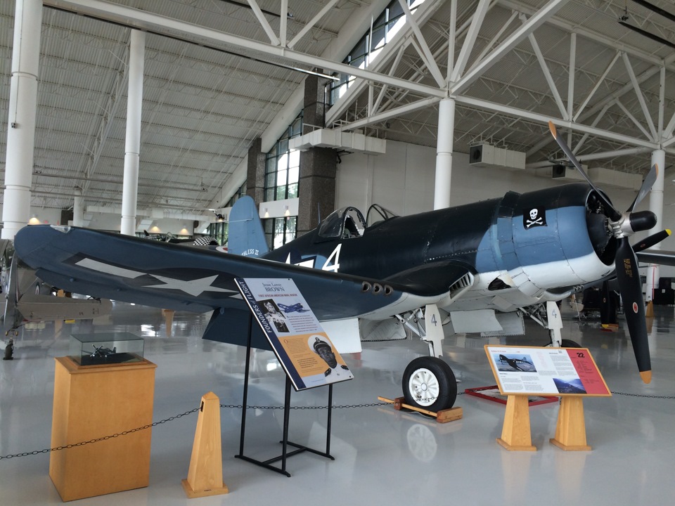 FG-1D Corsair. Этот корсар тоже не видел боев Второй Мировой, но зато успел повоевать за Сальвадор. В 1968 военно-воздушные силы этой страны использовали самолет против сил Гондураса. В правом крыле самолета даже имеется отверстие от пули.