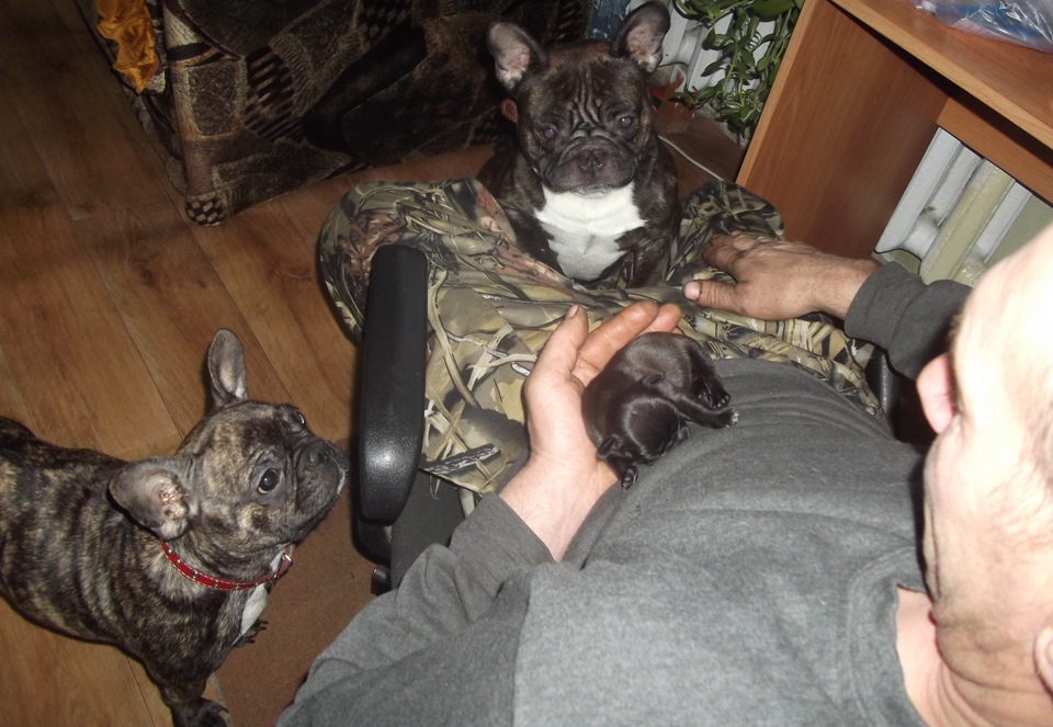 Доброго времени …С наступающим ! Последнее фото очень тронуло. Как мама заботится ? аккуратная ? глаза у щенка наверное прозрели …как с кормлением дело…