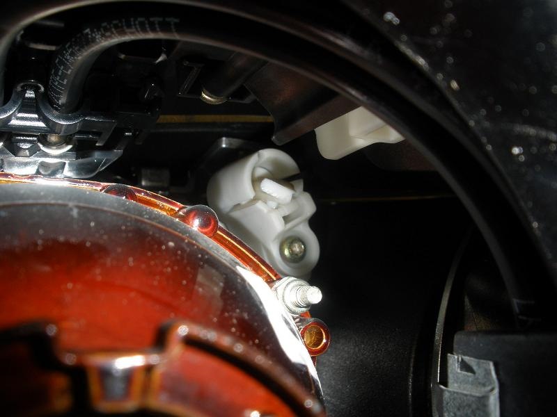 2. Отодвинуть сломанный кронштейн как можно дальше к задней стенке фары. Для этого крутим регулировочный винт.