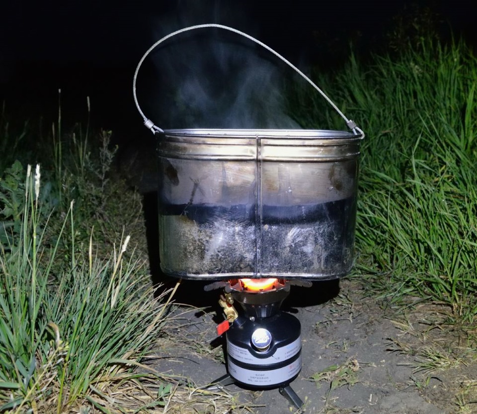 P.S. Обленился и перешел на газ) Не пачкаются руки при заправке, не надо ждать прогрева… нужно только где-нибудь по скидке балончики газа закупать. Из минусов — моя газовая горелка не дает совсем малый огонь выставить, неудобно при жарке на сковороде, в этой бензиновой "дозировка" точнее.