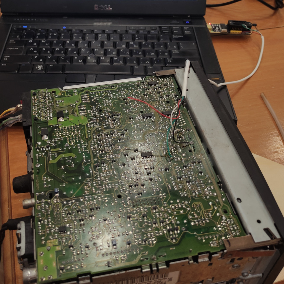 Я подключал Ch341a, запитывал магнитолу на включение и читал — писал eeprom
