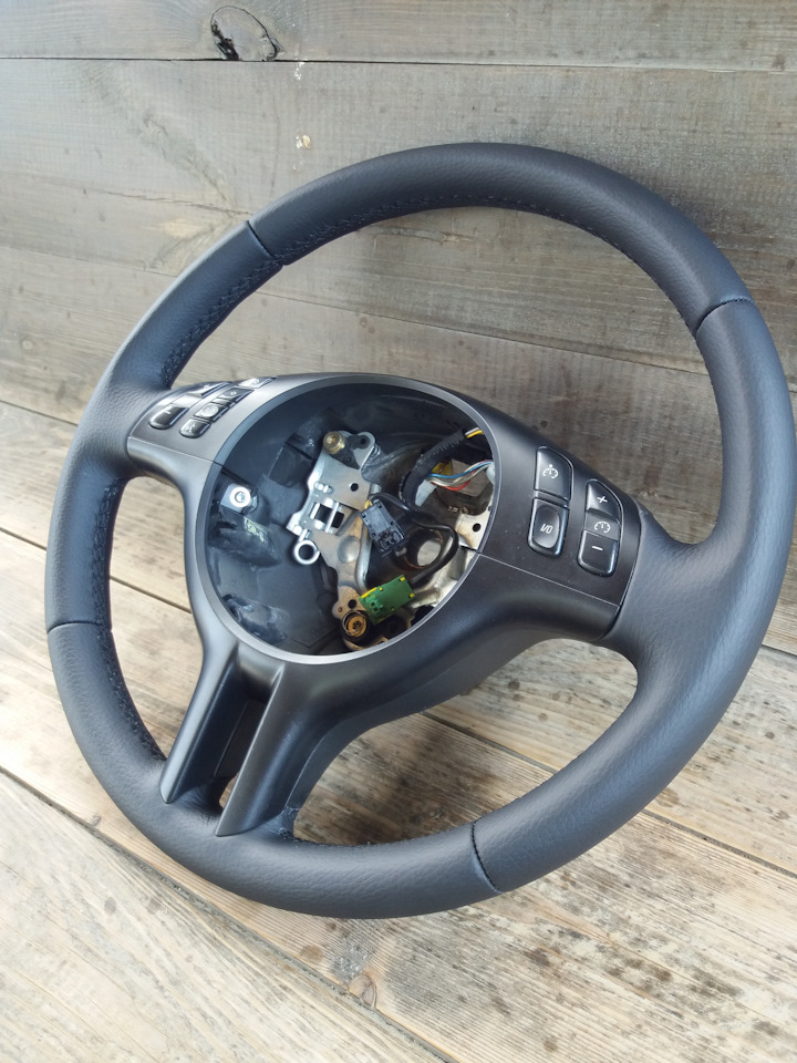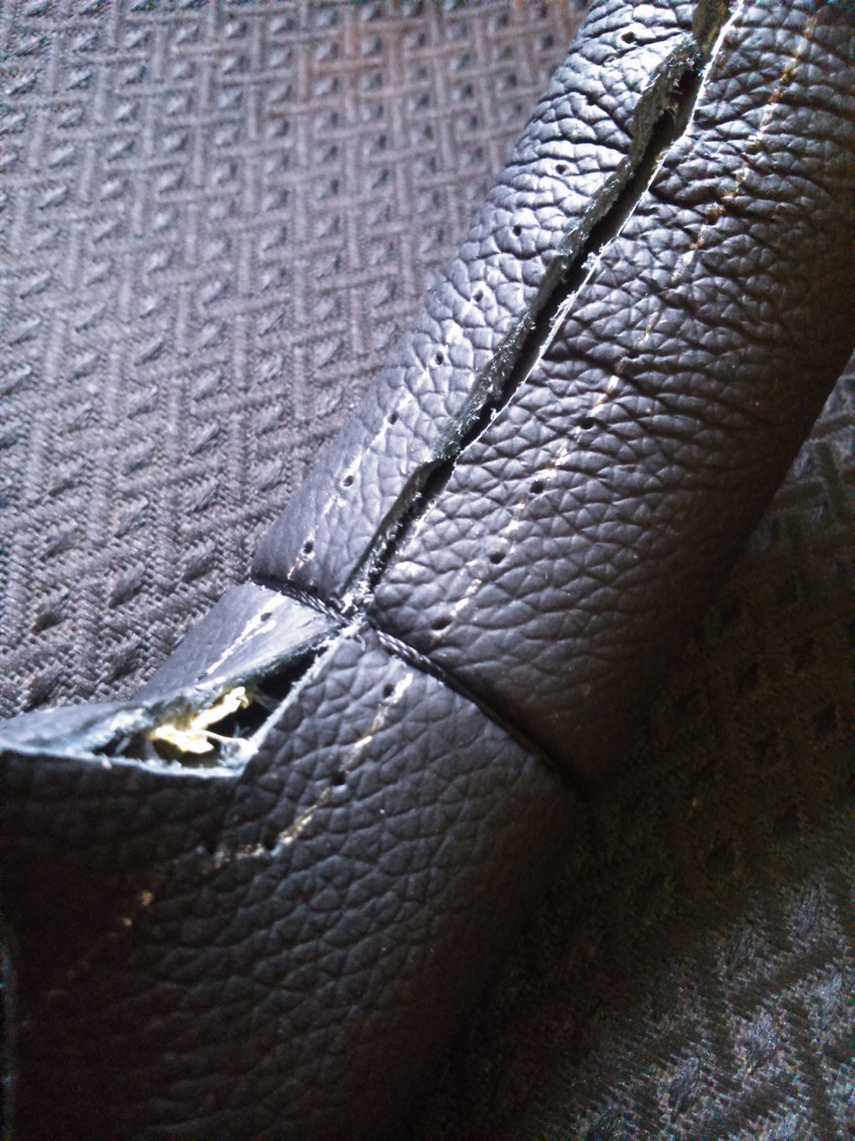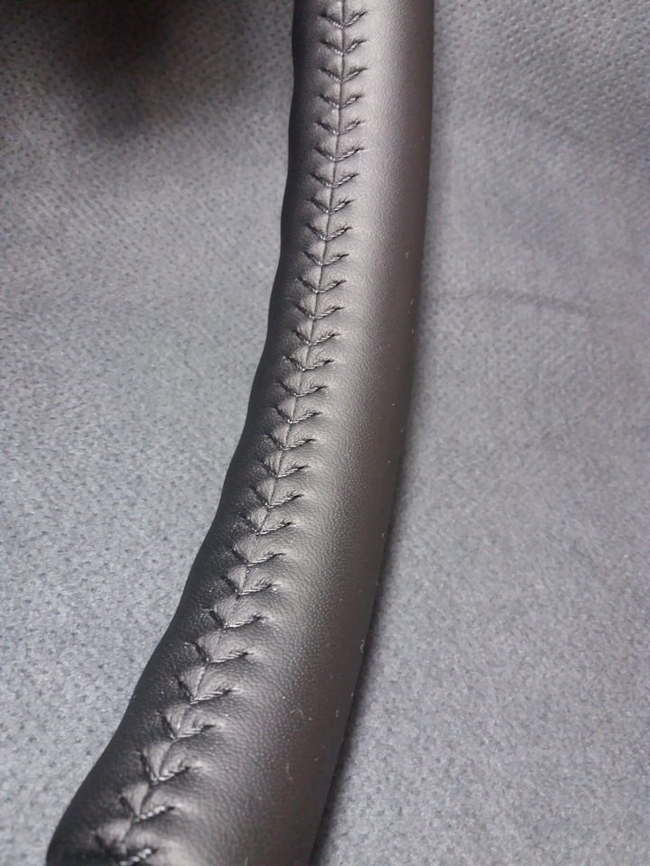 Вы сапожник?) Смысл этого шва как раз в том, чтобы нитки были утоплены в материал. Здесь он не затянут как надо, т.к. а) делалось первый раз, б) кожа рыхлая и нитка режет ее при натяге сильном. По поводу 4-х стачных швов: натяжение верхней нити машинки слабое + утопление шва в канавку ниткой+ сами канавки не глубокие. (Кстати на новом BMW X5, за почти 3,5 ляма, нитки так же видно и там это норма) Больше сделать — будут морщины на внутренней части. Это были первые опыты по перетяжке, все ошибки знаю. Больше двух сотен рулей после этого перетянуто.
