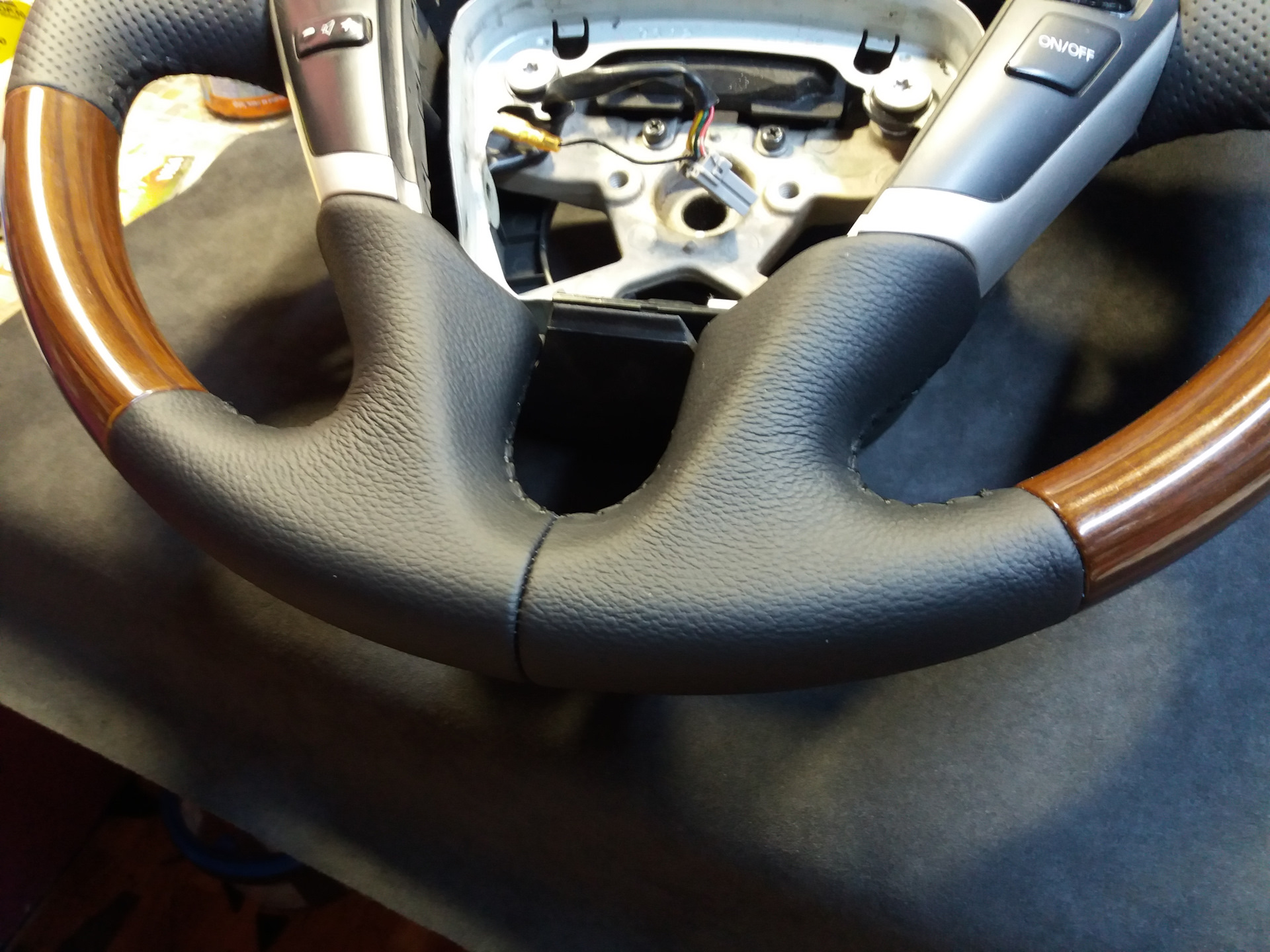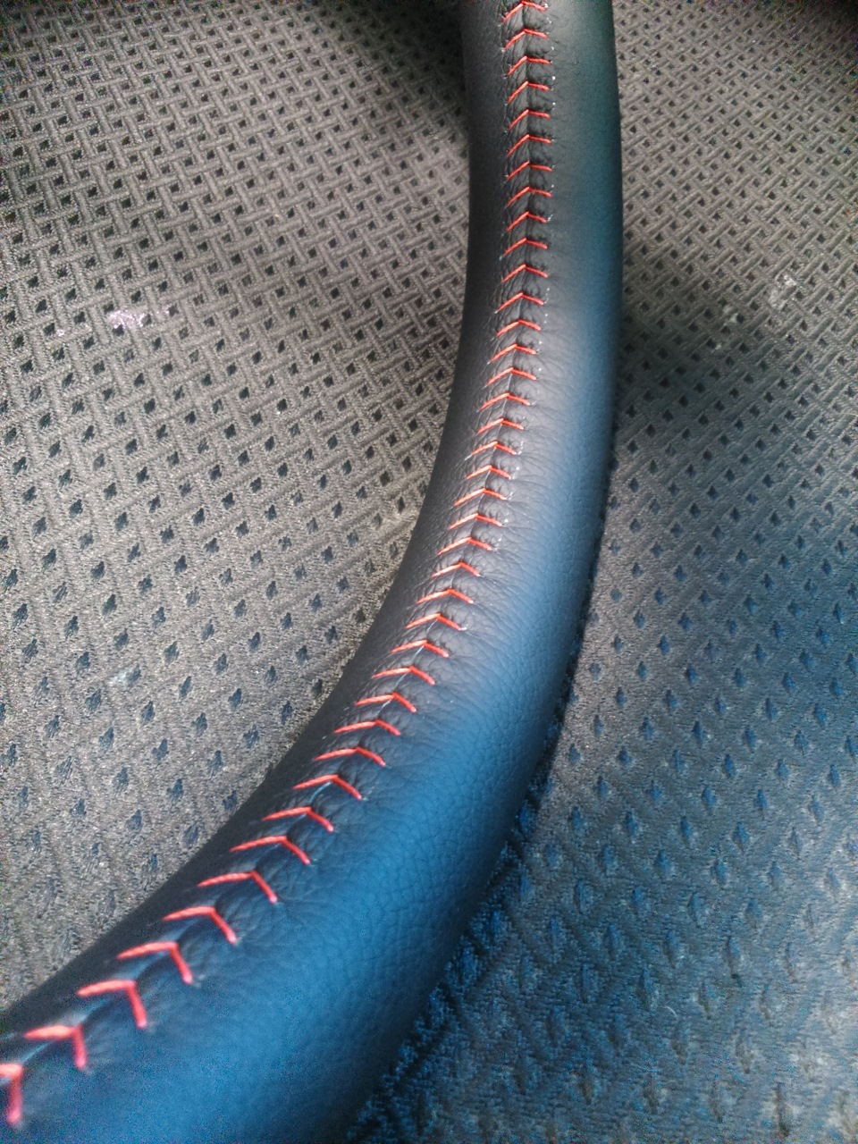 Сильнее не нужно… Там где сильнее затянуто (левая нижняя часть ручки), у вас граница шва начинает выделяться толщиной, над остальной площадью кожи. И ещё, руль сшит из 4 кусков кожи, там где они сшиваются видно нить, из за сильной натяжки, т.е чехол должен быть больше по окружности. Не сочтите за дерзость…))))