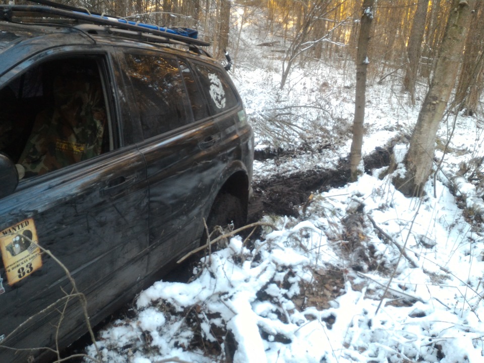 За время данной лайтовой покатушки и я и водитель провалились по колено. Я в грязь, Серёга в лужу.