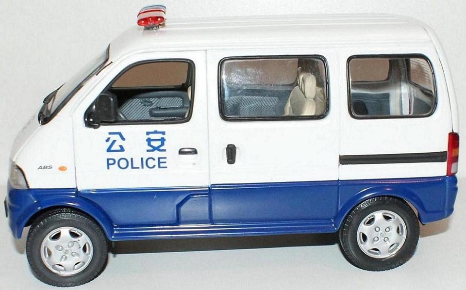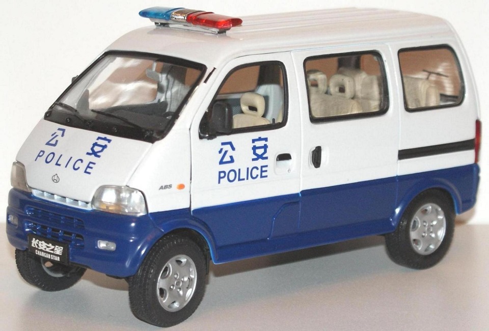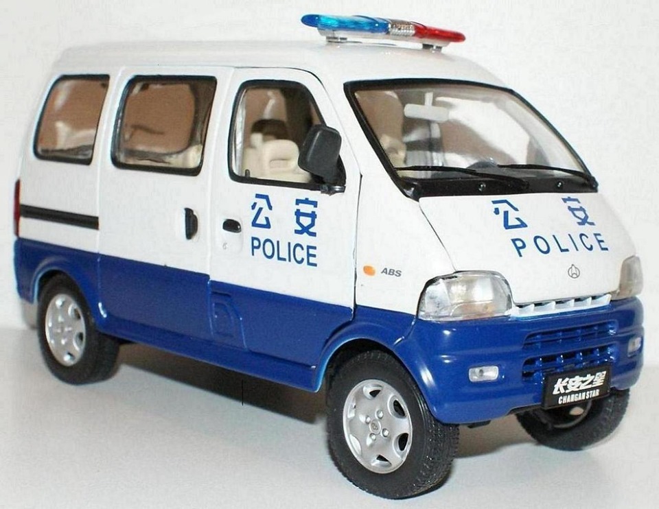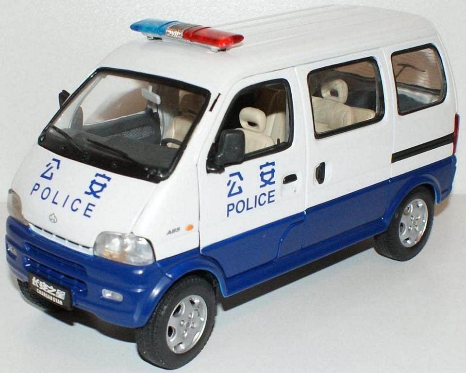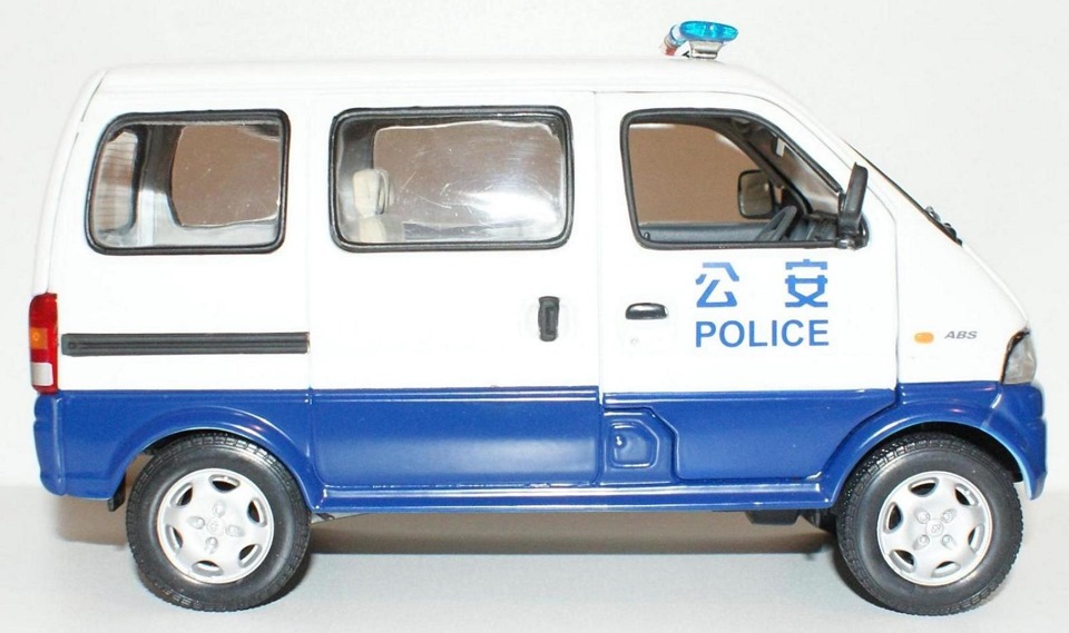 Эту модель я случайно увидел на распродажи у Аллана, коллекционера из Гон-Конга. До этого момента я такую нигде и никогда не видел и учитывая мою темку "POLICE", решил заполучить её в своё собрание. Как и ожидал, моделька оказалась простенькой, но очень интересной. И так — Suzuki Changan Star Police Van, производитель, как вы сами понимаете — не известен и проще говоря — CM, что расшифровывается как China Models…